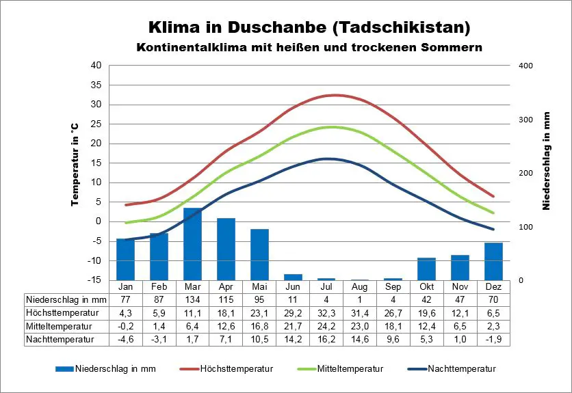 Wetter in Duschanbe, der Hauptstadt von Tadschikistan
